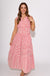 Breezy and effortlessly flattering, this sleeveless midi dress is made for warm days and easy style. Designed with an elastic waistband for a comfortable fit, it features a tiered silhouette that moves beautifully with every step. Finished with functional side pockets and bold red stripes, it’s the perfect mix of casual charm and classic design—ideal for summer outings, vacations, or weekend brunch.