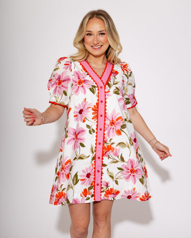 Elevate your style with our Floral Charm Scalloped Edge Mini Dress! Perfect for those back-to-school vibes, this vibrant mini dress brings a fresh ...