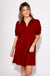 Burgundy Lane Split Neck Short Sleeve Mini Dress