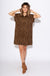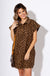 Make a bold statement with this leopard print mini dress, featuring a high-neck with snap button closure and cuffed sleeves for a polished touch. The embroidered scallop hem adds subtle femininity, while side pockets bring practicality to this lightweight knit.