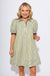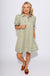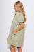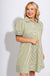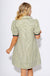 Striped Puff Sleeve Swing Shirt Dress in Olive