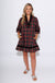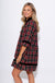Velvet Trim Plaid Mini Dress in Black
