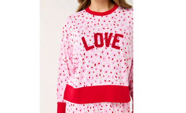 Wrap yourself in Valentine's Day comfort with this ultra-soft lounge set featuring a bold leopard print in pink and red against a crisp white backg...