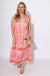 Floral Print Border Midi Dress with Front Tie