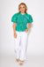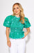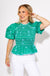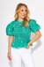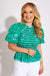 Bright, bold, and classroom-ready! This ruched peplum top features playful puff sleeves, light blue edging, and a vibrant floral print on a kelly green background. The flattering ruched bodice adds shape while the peplum hem brings the fun. It’s the perfect pop of color for lesson plans, lunch dates, or lively weekends!