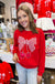 Elevate your casual wardrobe with this standout red sweatshirt featuring a large, eye-catching bow in classic red gingham print. Soft red velvet cherries add a playful touch, accented by shimmering gold sequins for the stems. Perfect for adding charm and warmth to your everyday style.