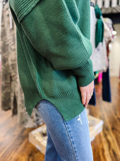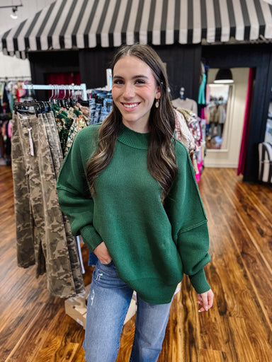 Wrap yourself in effortless style with this oversized sweater that's as cozy as it is charming. The rich dark green shade brings sophisticated eleg...