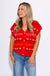 Bring playful charm to your layering with our Button-Down Knit Vest with Floral Pattern. Crafted in a bold red knit, this sleeveless style is adorned with sweet daisy floral motifs and stripe details for a retro-inspired touch. The V-neckline and button-down front keep it classic, while the soft, cozy knit makes it just as comfortable as it is eye-catching. Perfect for pairing over blouses or tees, it’s a cheerful statement piece for every season. 🌼❤️