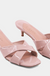 Elevate your style with the Sweet Step Sandal Mule Kitten Heel. The sandal mule features a sleek, crossover strap design with a pointed toe and a glossy faux leather finish. With a low kitten heel and lightly padded insole, this mule offers both fashion and comfort for any occasion.