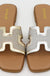 Glitter H Strap Slide Flat Sandals in Gold feature a chic and sparkling design that adds a touch of glamour to any outfit. The H-shaped straps are adorned with glitter, creating a shimmering effect that catches the light beautifully. These sandals are flat, offering comfort and ease of wear, making them perfect for both casual outings and dressier occasions. The open-toe design and slip-on style make them a versatile addition to your footwear collection, effortlessly combining style and practicality.