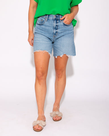 Elevate your summer style with our Sedona Mid Rise Shorts! Made with light denim and a frayed edge, these shorts offer a flattering mid-rise fit. P...