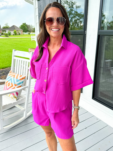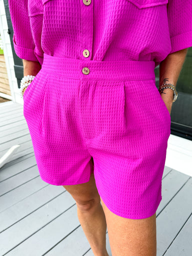 Elevate your summer style with our Polished Pleat High Waisted Shorts! Made with a solid high waist, pleated design, and rolled cuff hem for a chic...