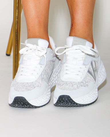 These Metallic Glide Silver Sneakers blend vintage and modern trends for a bold, minimalistic look. With supple faux leather and suede up...