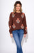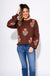 Elevate your cozy layers with a touch of artistry. This floral jacquard knit sweater features a charming single-stem flower design set against a rich espresso background. The crew neckline and ribbed cuffs add classic detail, while the subtle puff sleeves bring a feminine twist. Soft, breathable, and just the right weight—this knit is perfect for chilly days when you still want to make a statement.
