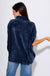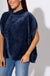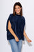 Cozy meets chic in this oversized navy pullover poncho. Crafted from luxuriously soft knit fabric with a subtle sheen, it features a relaxed mock neck and gentle topstitching for refined detail. The flowy, oversized silhouette drapes effortlessly, making it perfect for layering over jeans or leggings for a polished, comfortable look.