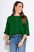 Make a bold yet effortless statement in this lightweight sweater knit top, designed in a rich Amazon green hue. Featuring a ¾ wide sleeve, classic button-front closure, and a soft, breathable feel, this piece blends structure with ease. Its unlined, non-sheer design makes it a perfect standalone piece or layered look for transitional weather—polished enough for work, relaxed enough for weekends.