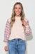 Elevate your style with the THML Mixed Media Knit Sweater in Cream. Featuring eye-catching multi-colored sleeve details, this sweater blends comfort and fashion effortlessly. Perfect for any occasion, this versatile piece will add a pop of color and texture to your wardrobe. Upgrade your look today!