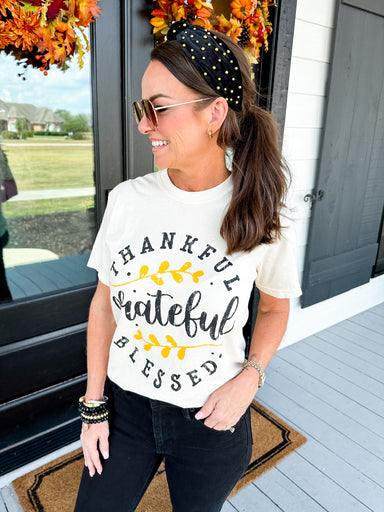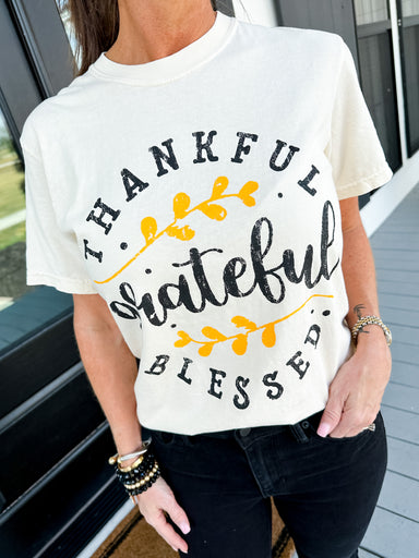 Celebrate the season in comfort with the Give Thanks Tee! Set against a cozy brown heathered fabric, this soft tee features warm autumnal lettering...
