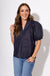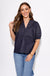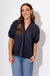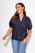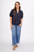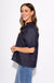 Elevate your casual-chic game with this structured denim top featuring a split neck and puff sleeves. The standout detail? A contrast tan suede ruffle along the neckline, adding texture and sophistication to this effortlessly stylish piece. Perfect for pairing with jeans, skirts, or layered under jackets, it’s a versatile addition to your wardrobe.
