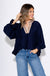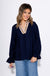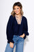 Add a subtle wild touch to your wardrobe with this midnight V-neck blouse. Featuring contrast leopard trim and brown edging, long sleeves, and a relaxed silhouette, it’s effortlessly chic for both workdays and weekend outings. Lightweight and unlined, it’s perfect for layering or wearing on its own.