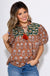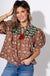 Embrace effortless fall style with this beige background top, adorned with a delicate multi-floral print. Featuring a charming neck tie and subtle ruffle accents, this blouse is perfect for layering or wearing on its own. Lightweight and breezy, it’s ideal for crisp autumn days and brings a touch of seasonal elegance to any outfit.