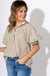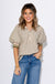 Elevate your casual wardrobe with this olive stripe half-zip top. Featuring short puff sleeves and a multicolor accent band, this lightweight woven top is breezy, comfortable, and effortlessly stylish. Perfect for pairing with jeans, shorts, or skirts, it adds a pop of playful detail to any outfit.