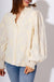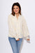 Embrace effortless elegance with this cream-colored floral applique embroidered top. Featuring long puff sleeves with smocked ruffle cuffs, a ruffled V-neckline, and a button-up front, it offers a delicate, feminine silhouette. Lightweight and fully lined, the woven fabric ensures comfort without transparency, making it perfect for both day and evening wear. Elevate your wardrobe with this romantic, timeless piece.