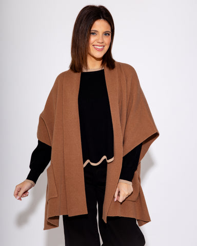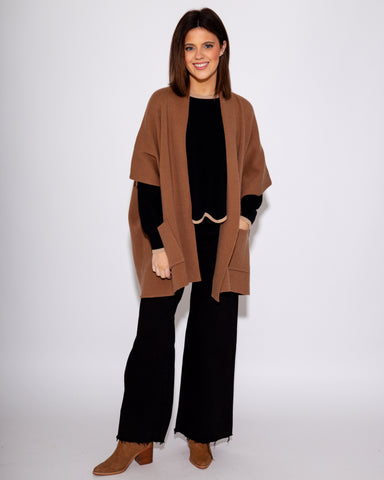 Cozy meets chic in this oversized shawl collar cardigan. Crafted in a rich mocha knit, it features dolman-style sleeves, a relaxed drop-shoulder si...