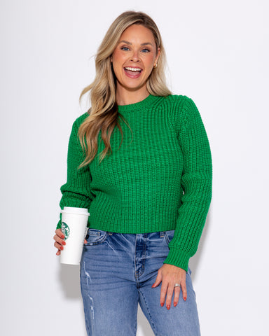 This comfy green ribbed sweater features a round neckline, ribbed texture, and long sleeves. With its easy pull over design, it's perfect for chill...