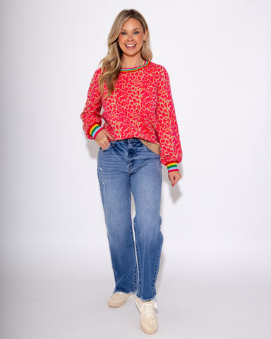 Playful meets cozy in this soft leopard sweater with a colorful twist! Featuring long puff sleeves and a relaxed fit, this top stands out with its ...
