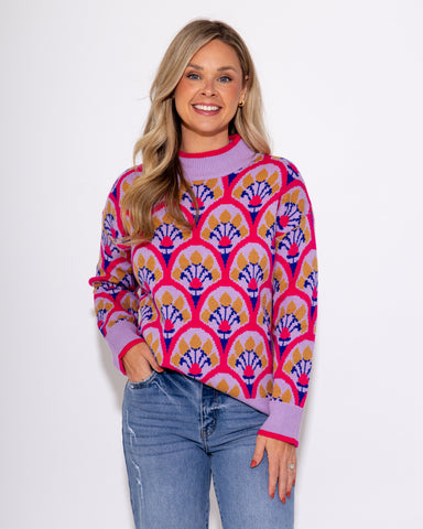 Inspire your style with the Flora Bloom Sweater! Featuring a beautiful flower print knit design and a flattering mock neck, this pullover top is pe...