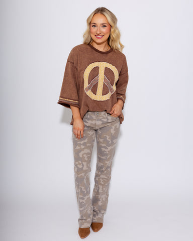 Celebrate fall’s rich hues with this charming floral peplum top. Covered in a warm, all-over floral print, it’s accented perfectly by brown ric rac...