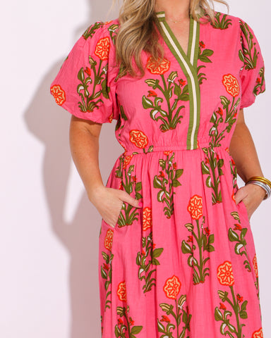Indulge in playful sophistication with the Clementine Bloom Mini Dress. This multi-print dress features a cinched sleeve and a stripe contrast acce...