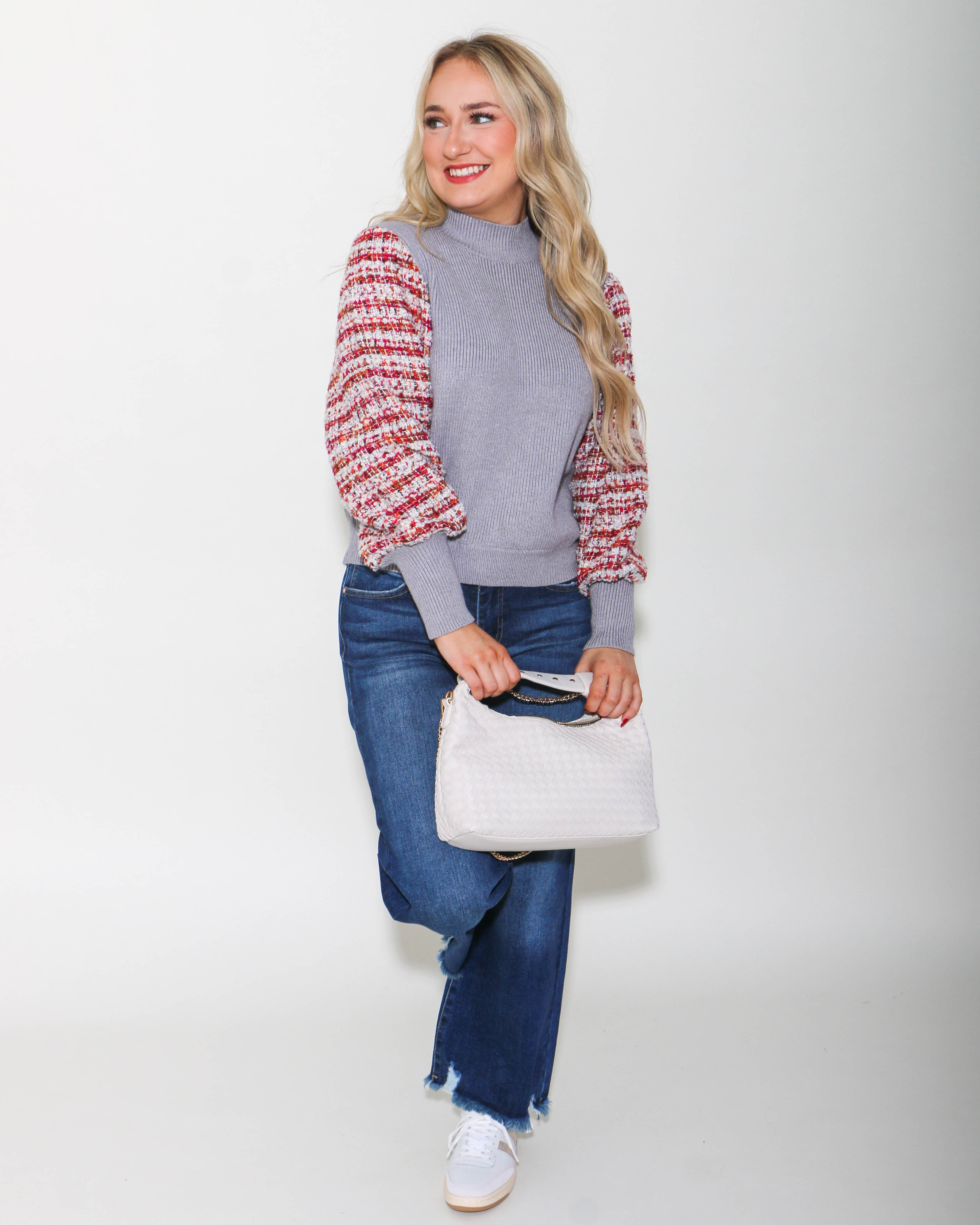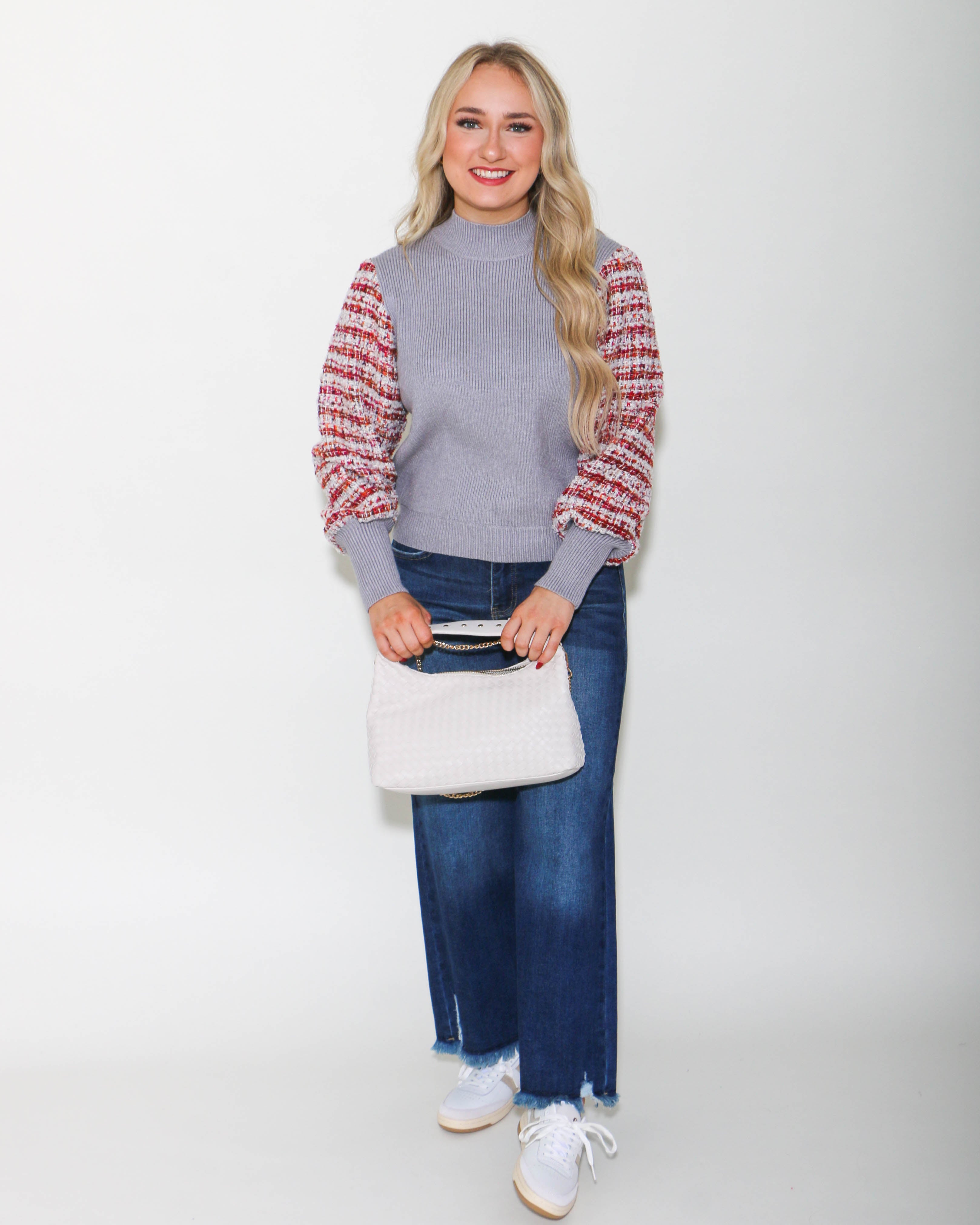 THML | Mixed Media Knit Sweater in Gray