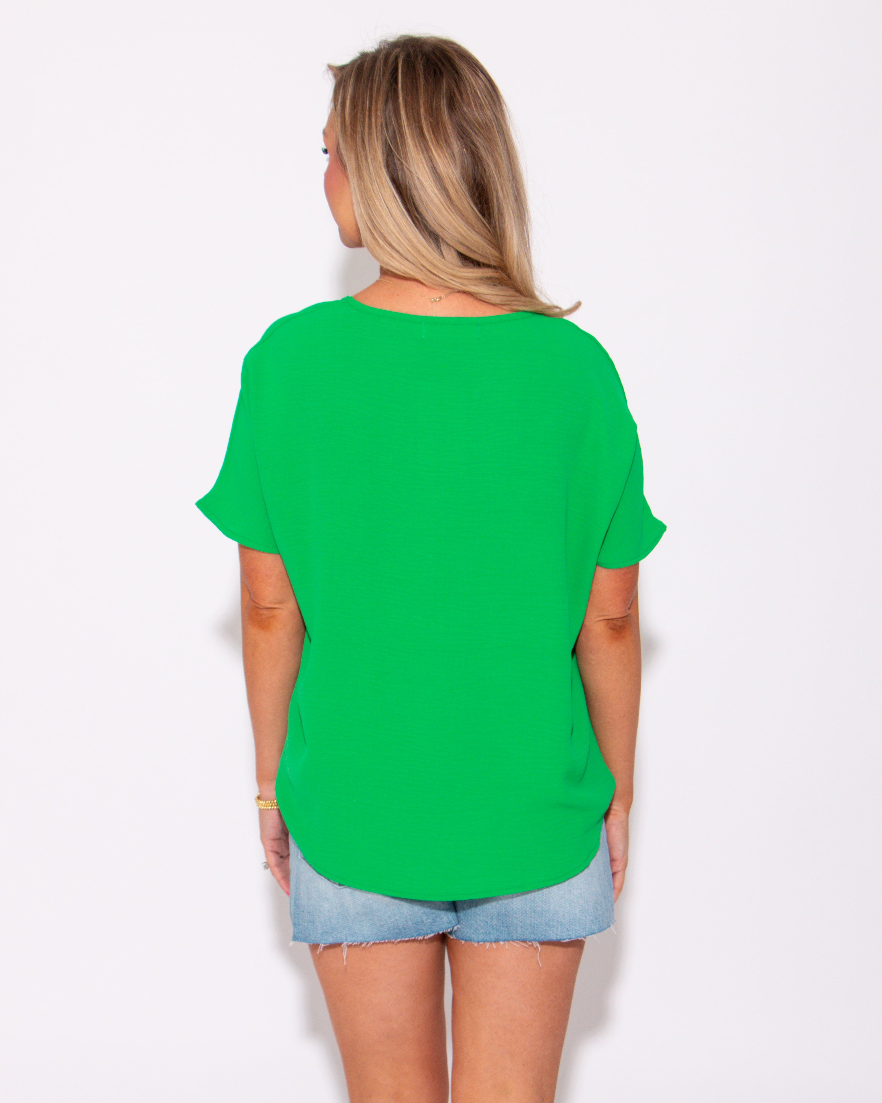 Discover the effortless style and comfort of A Classic V Neck Top in Green. With its lightweight woven material, non-sheer design, and classic V-neck cut, this short sleeve pullover is perfect for any occasion. Elevate your wardrobe with this must-have piece!