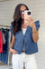 Add a playful yet polished layer to your wardrobe with this denim quilted vest. Featuring a stitched pattern, ruffle shoulder accents, and a flattering V-neck, it’s designed with a front button-down closure and convenient side pockets. Fully lined for comfort and warmth, this versatile piece elevates any outfit from casual to chic.