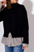 This black mock neck long sleeve top gives the illusion of a perfectly layered look — without the bulk. Designed with an attached white shirt hem, it blends casual polish with cozy comfort. A chic, everyday essential for easy style on the go.