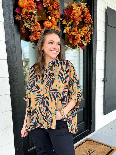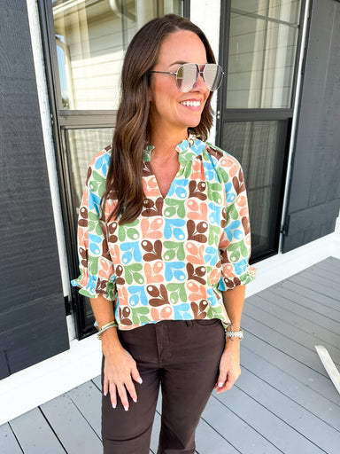 Elevate your everyday style with this chic Puff Sleeve Print Detail Top. Designed in a rich brown hue with a cream abstract print, this standout pi...