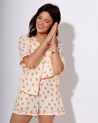 Indulge in ultimate comfort and style with our Strawberry Snuggles Lounge Set! Crafted from soft, double gauze fabric, this 2-piece set features a ...