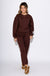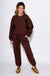 Comfy meets polished in this rich chocolate brown fleece set, designed for elevated everyday lounging. The crewneck sweatshirt features pleated shoulder details for a structured touch, while the drawstring joggers offer a relaxed fit without losing their shape. Both pieces are unlined and lightweight, making them breathable and easy to layer. Whether you’re headed out or staying in, this set delivers softness, style, and effortless coordination.