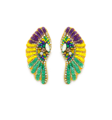 Spread your wings in style with these Mardi Gras Beaded Wing Earrings. Featuring a stunning design of vibrant beads in purple, green, and gold, the...
