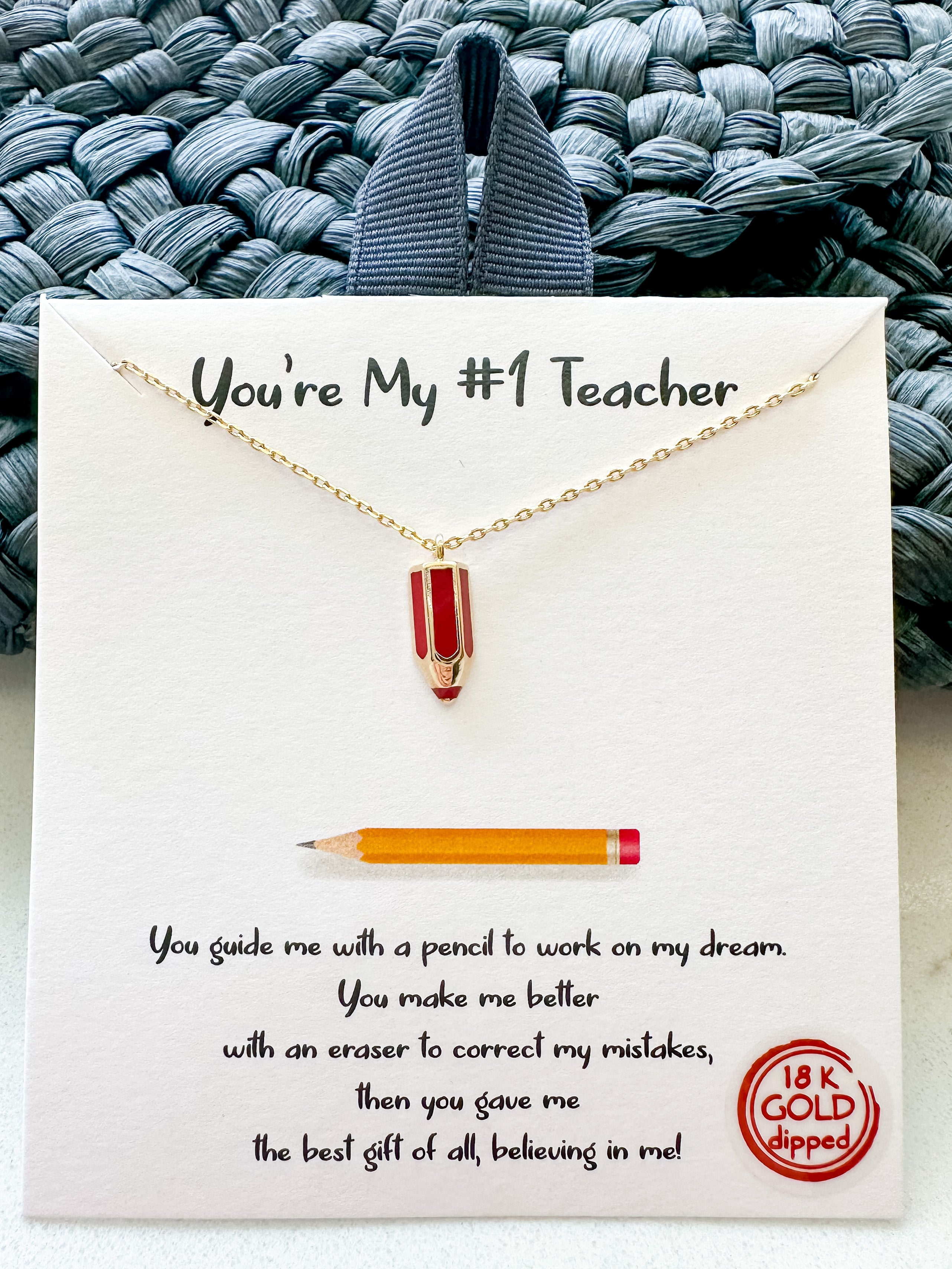 Chevron down icon Chevron down icon Zoom icon Click to expand Tap to zoom #1 Favorite Teacher Necklace No reviews Find us on Facebook Find us on Pinterest Find us on Instagram $ 24.00 | / Availability: Translation missing: en.general.icons.icon_check_circle icon Only 3 left! 1 2 3 4 5 6 7 8 9 10+ Quantity Chevron down icon Quantity Add to cart Spinner icon Notify me when back in stock Email address Email me when available 18K GOLD dipped dipped Hypoallergenic Handmade Made of Brass Lead & Nickel Free Designed in USA 100% Crafted with you in mind