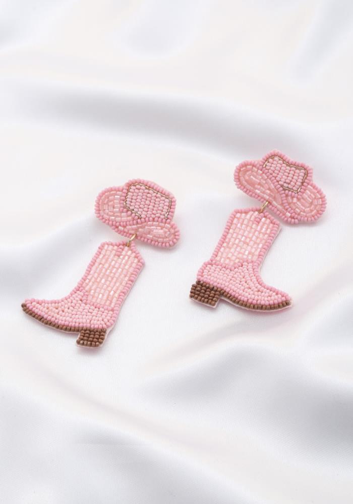 Chevron down icon Chevron down icon Zoom icon Click to expand Tap to zoom Cowboy Boot and Hat Earring in Pink No reviews Find us on Facebook Find us on Pinterest Find us on Instagram $ 32.00 | / Availability: Translation missing: en.general.icons.icon_check_circle icon Only 1 left! 1 2 3 4 5 6 7 8 9 10+ Quantity Chevron down icon Quantity Add to cart Spinner icon Notify me when back in stock Email address Email me when available Cowboy Boot and Hat Earring in Pink Seed bead earring.