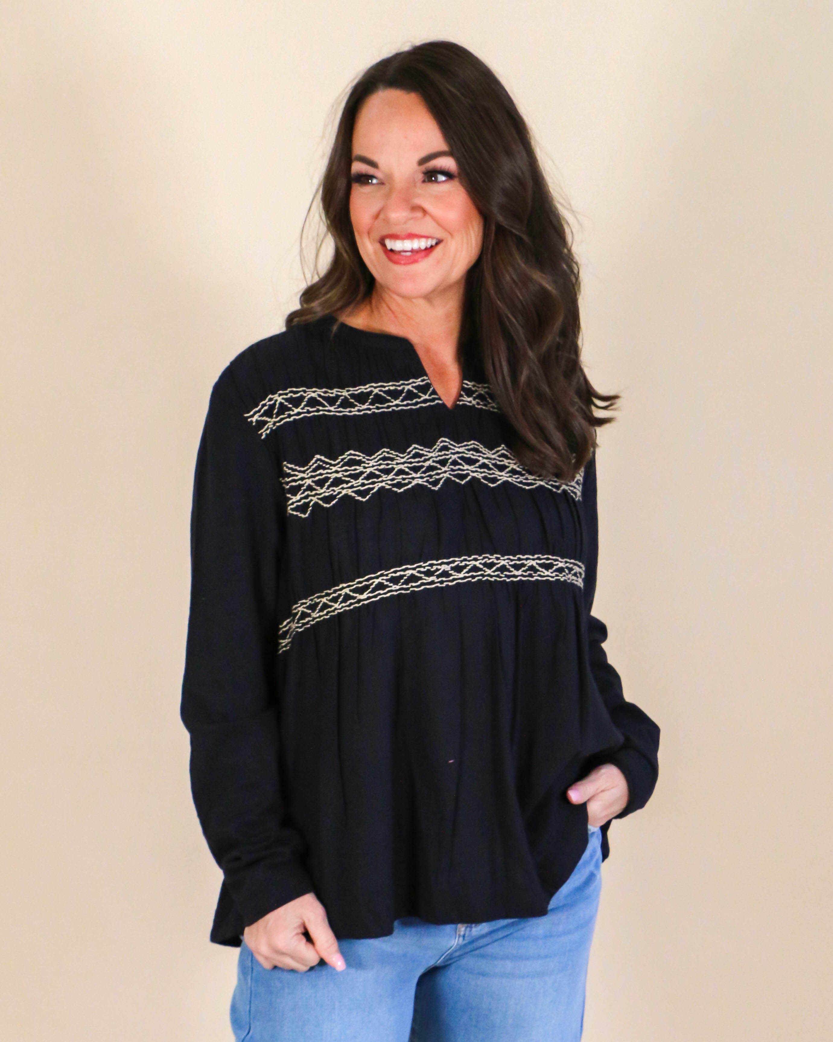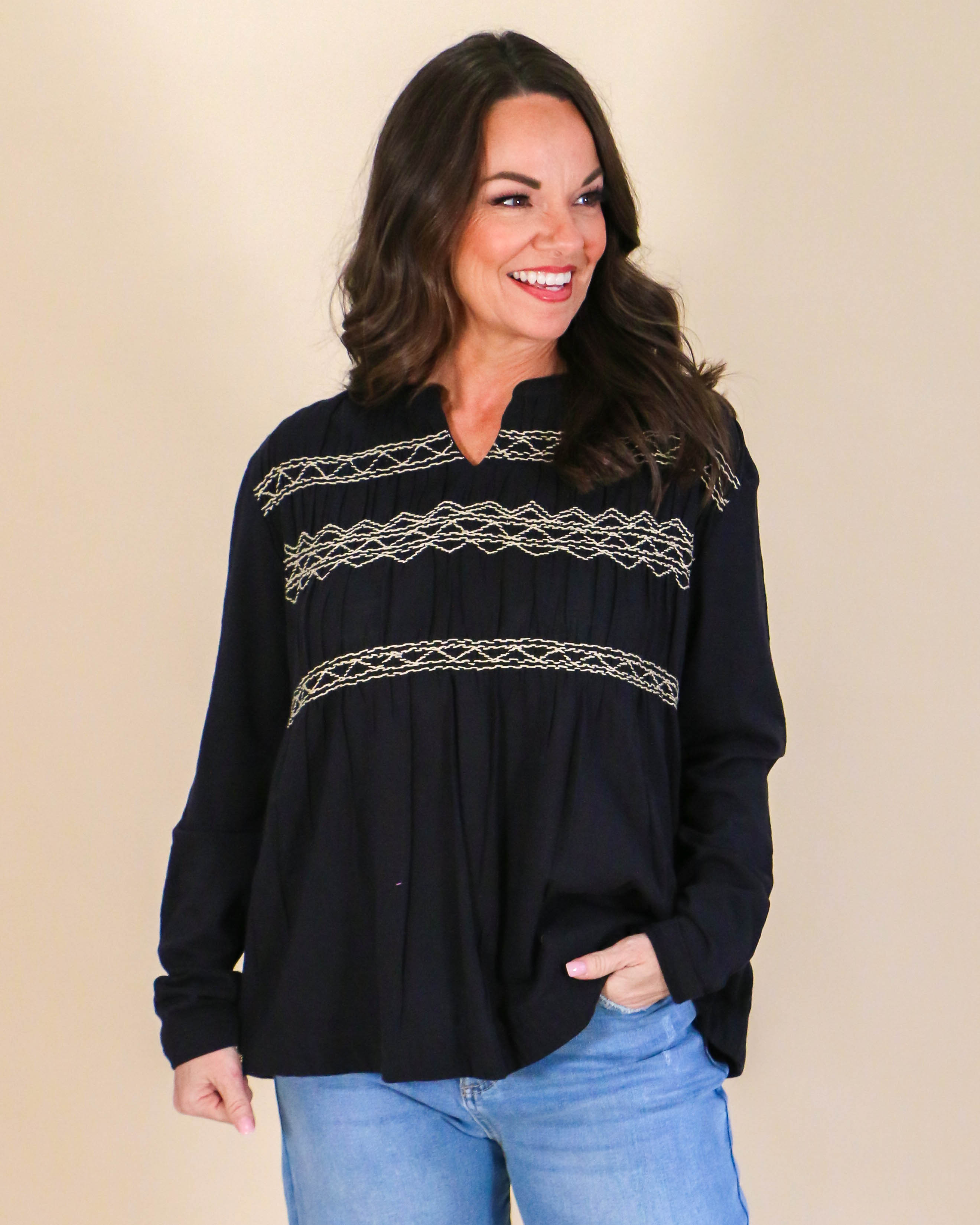 Experience ultimate comfort and style with our Long Sleeve Ribbed Top in Black. The ribbed design not only adds a trendy touch, but also provides a form-flattering fit. Perfect for any occasion, this top is a versatile addition to your wardrobe. Elevate your everyday look with this must-have piece!