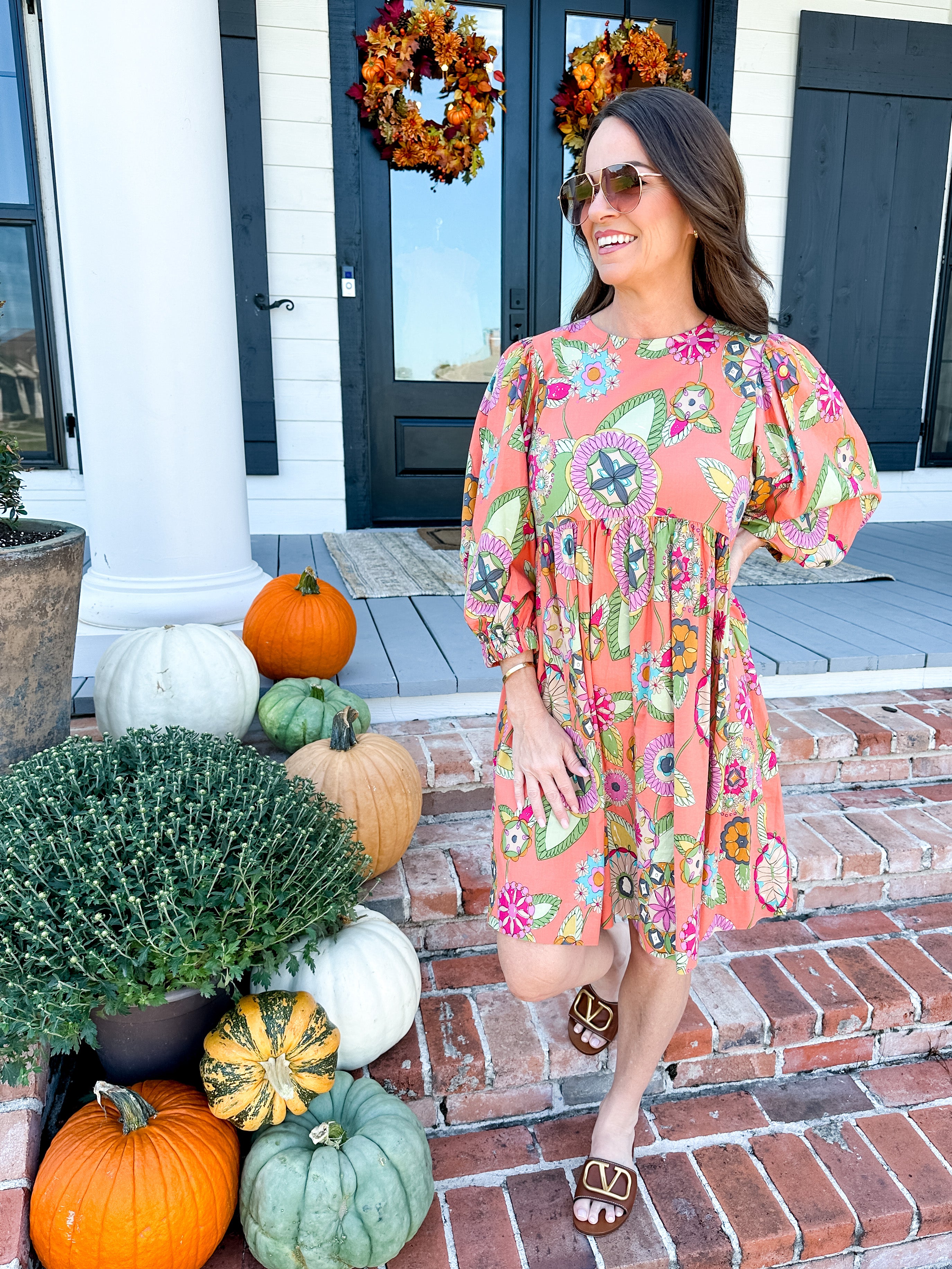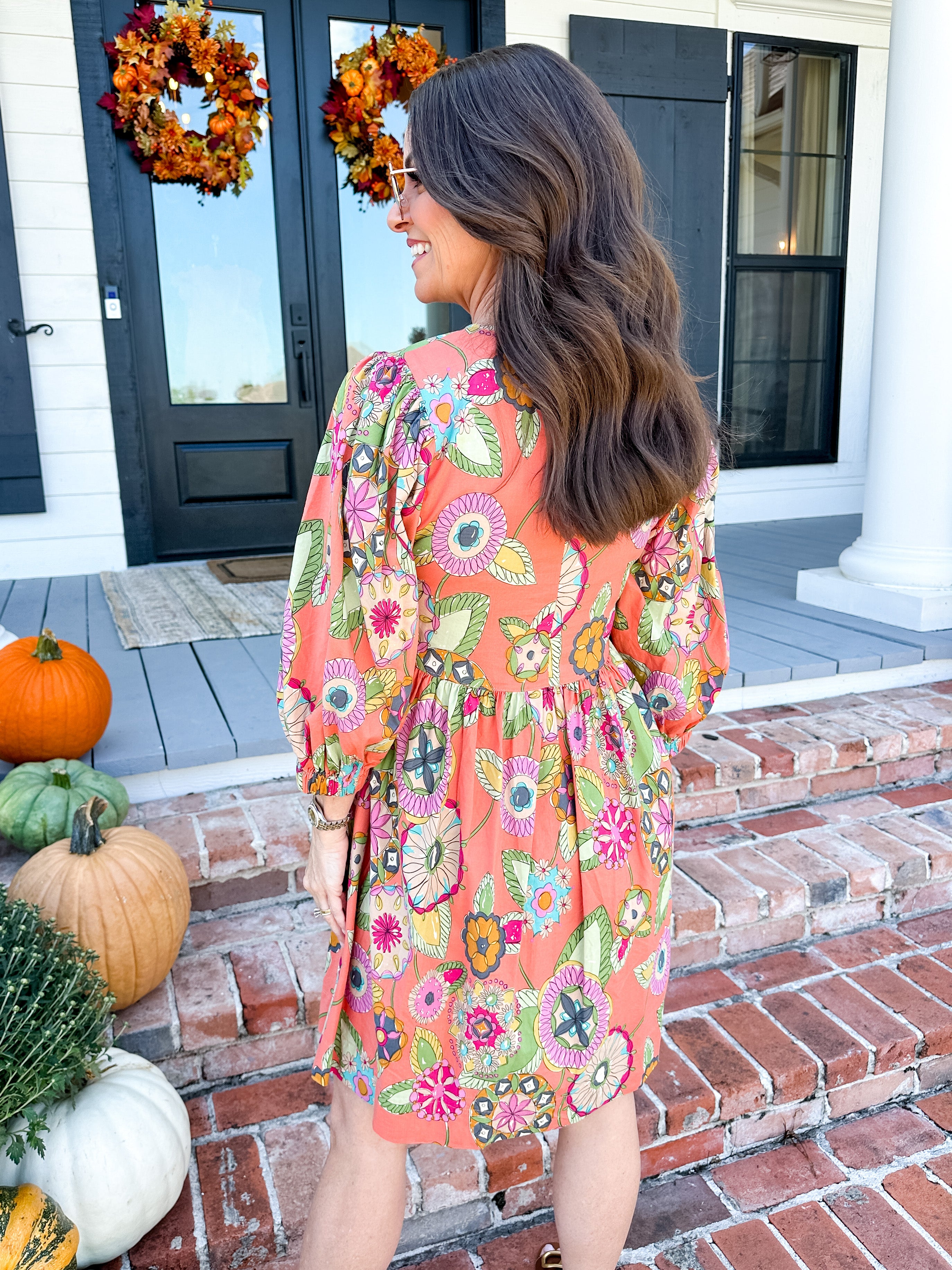 Elevate your style with our Peach Floral Dress, a perfect blend of sophistication and comfort. This dress is designed to make you look and feel amazing, whether you're attending a special event or simply enjoying a casual day out. The classic round neckline complements all face shapes, adding a touch of timeless elegance to your look. The peach floral pattern adds a touch of nature's beauty to your ensemble, making you stand out in any crowd.