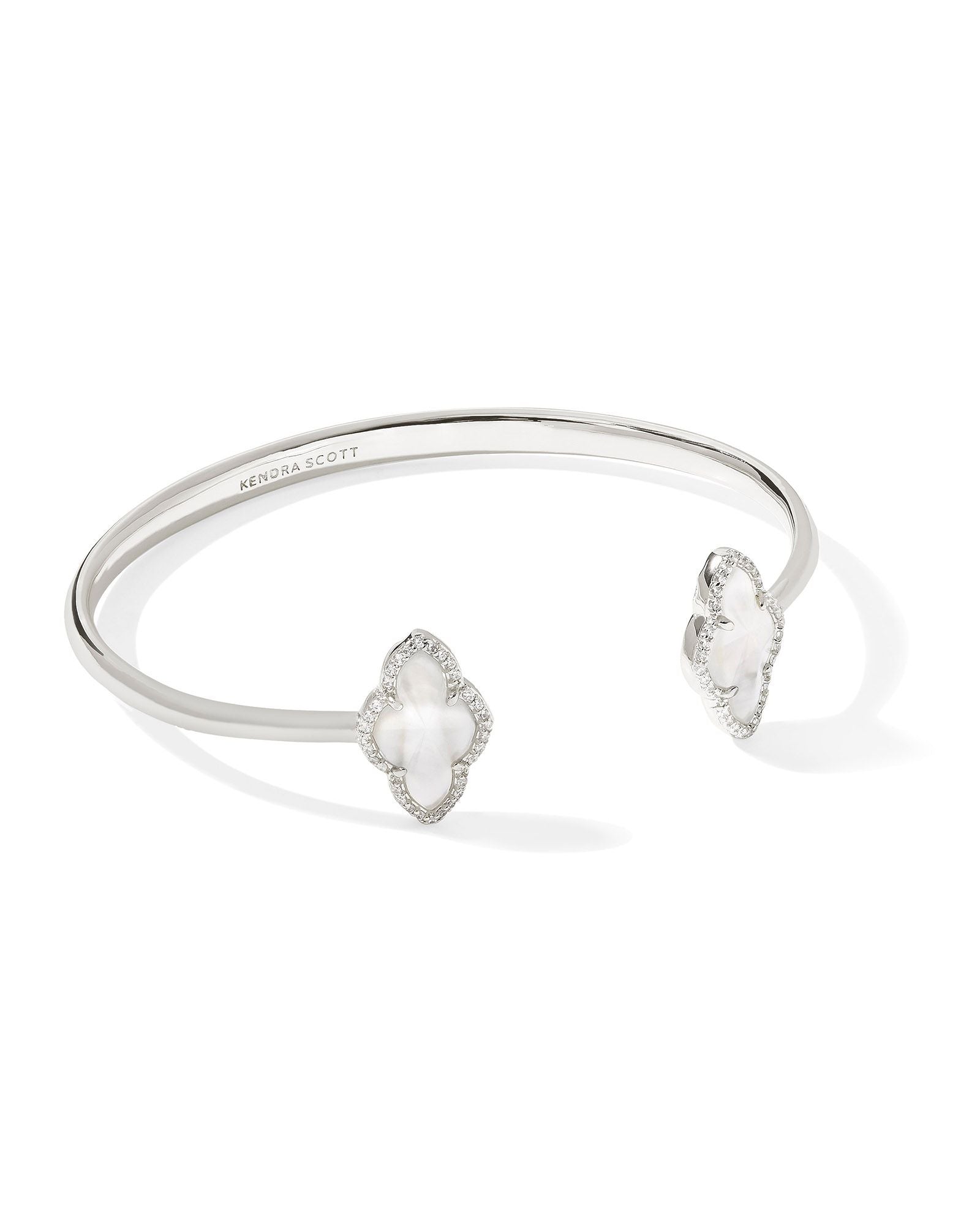 Abbie Pave Framed Cuff Bracelet in Rhodium Ivory Mother of Pearl