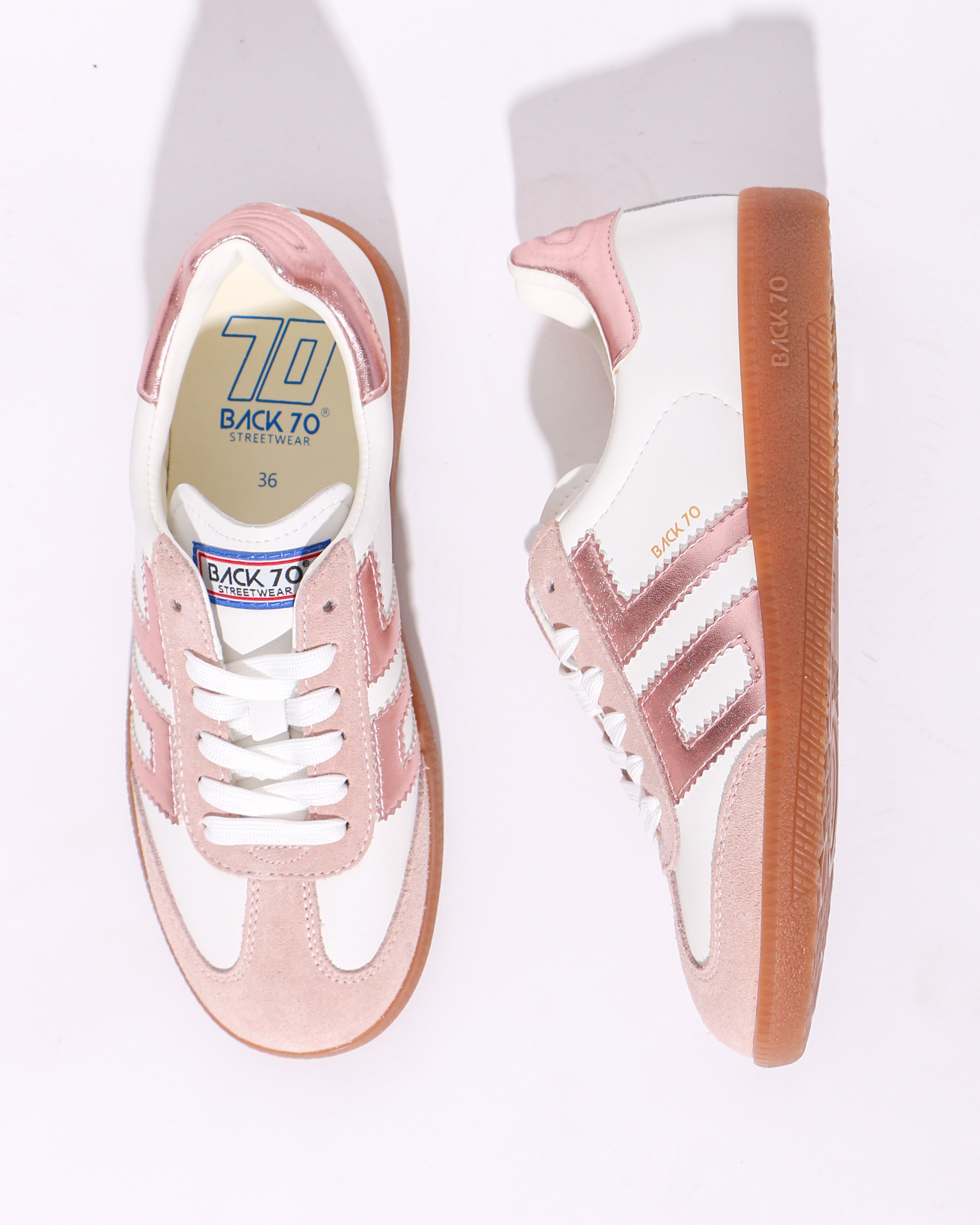 Elevate your streetwear style with our BACK 70 CLOUD IN PINK women's sneakers. Handcrafted with luxurious leather and suede, featuring stitched details and teddy fabric accents. Lined with soft fabric and suede for ultimate comfort, and a durable rubber outsole for everyday wear. Easy lace-up closure and removable foam footbed add convenience and support.