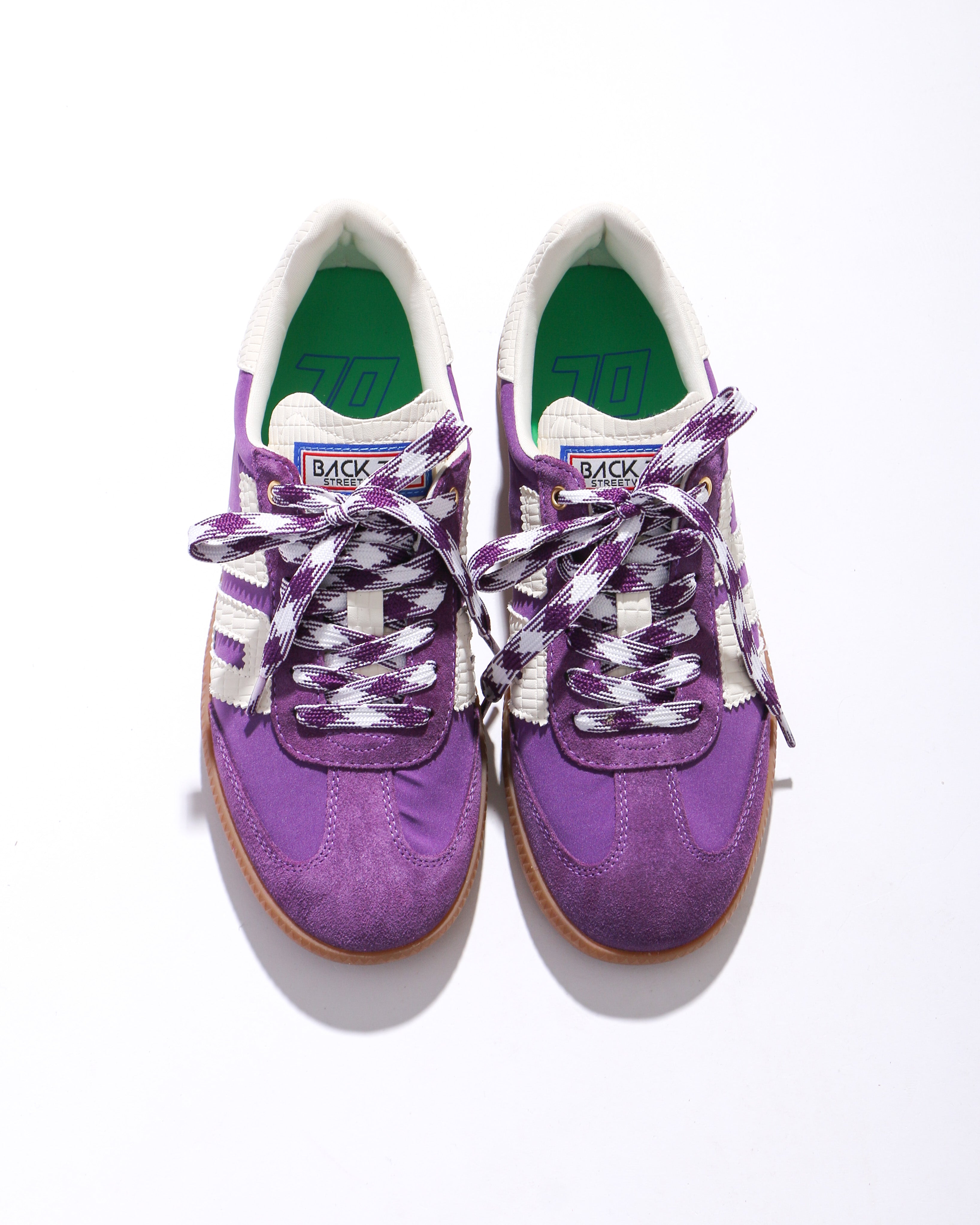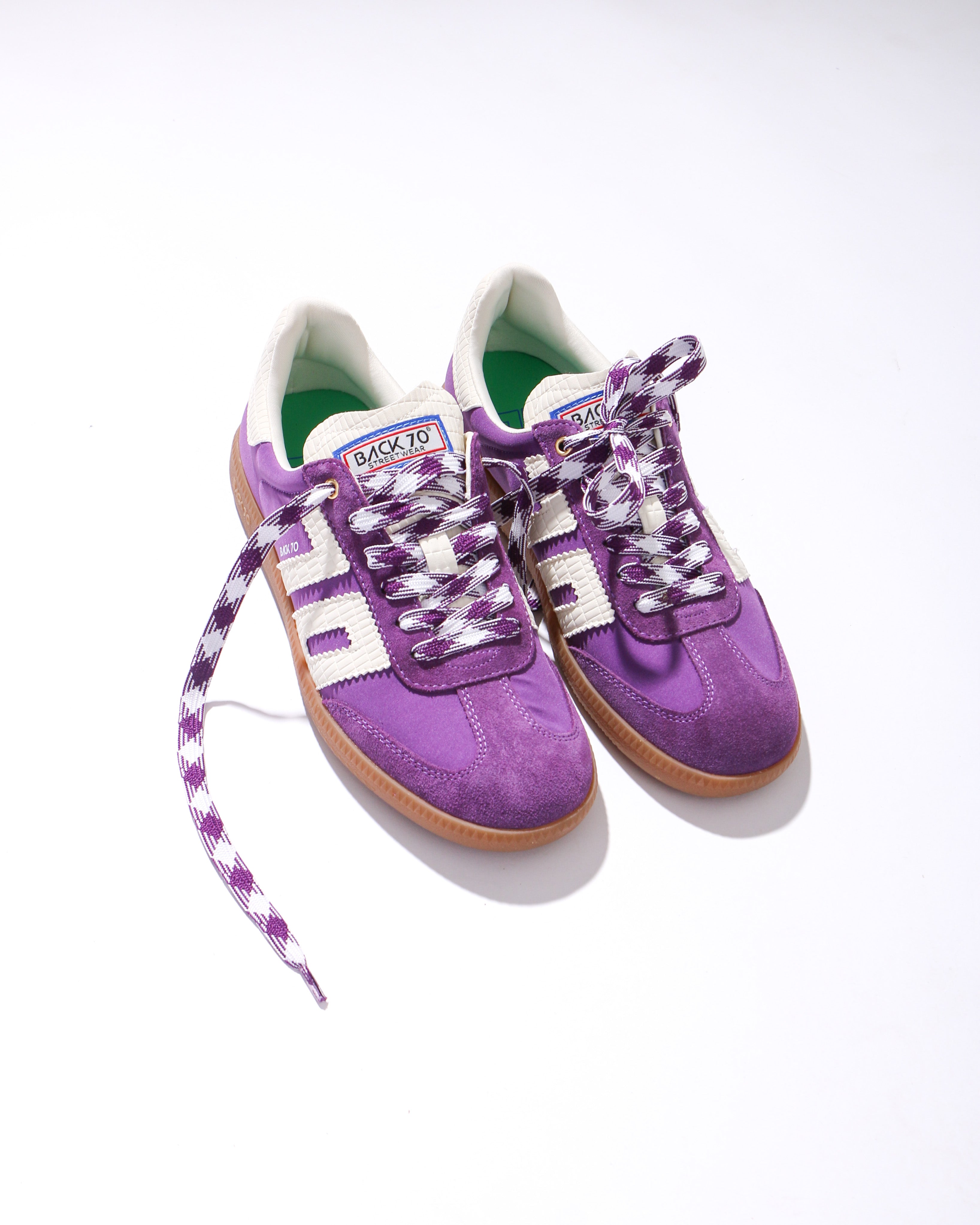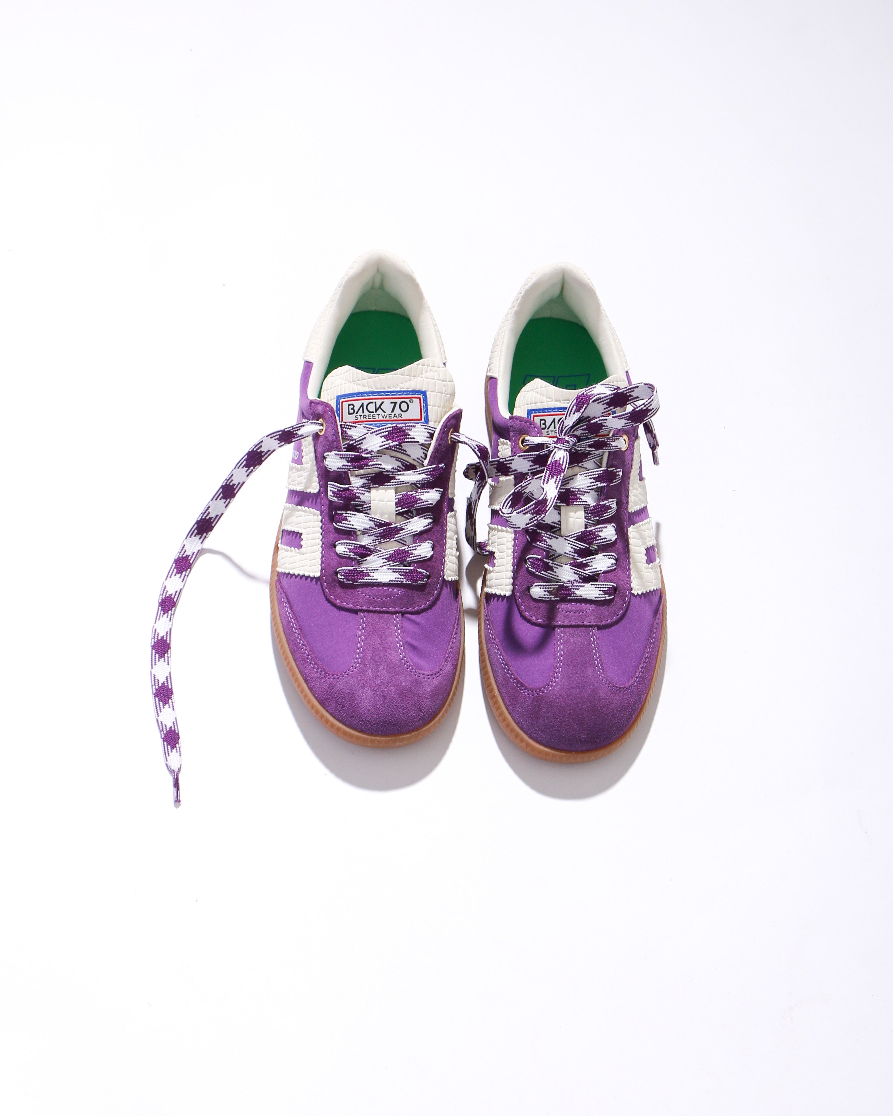 Step into the past with a modern twist in Back70 Ghost in Purple sneakers. Vintage-inspired, handcrafted leather, suede, and fabric upper create a timeless and unique streetwear style. Easy lace up closure, padded sock, and removable foam footbed provide comfort and durability as you explore the era of boundless self-expression.