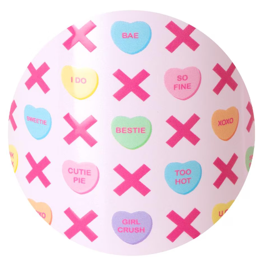 Mega sips, mega chill! 🧊 Bring laughter and love to your sweetheart this year with pastel candy conversational hearts on a glitter pink background.