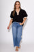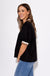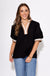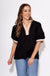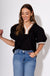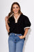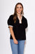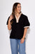 Experience effortless style with our Mocha and Off White Collared Black Top. This versatile top features a unique combination of blue and green hues, adding a pop of color to your wardrobe. The collared neckline adds a touch of sophistication, making it perfect for both casual and dressy occasions. Elevate your look with this must-have top.